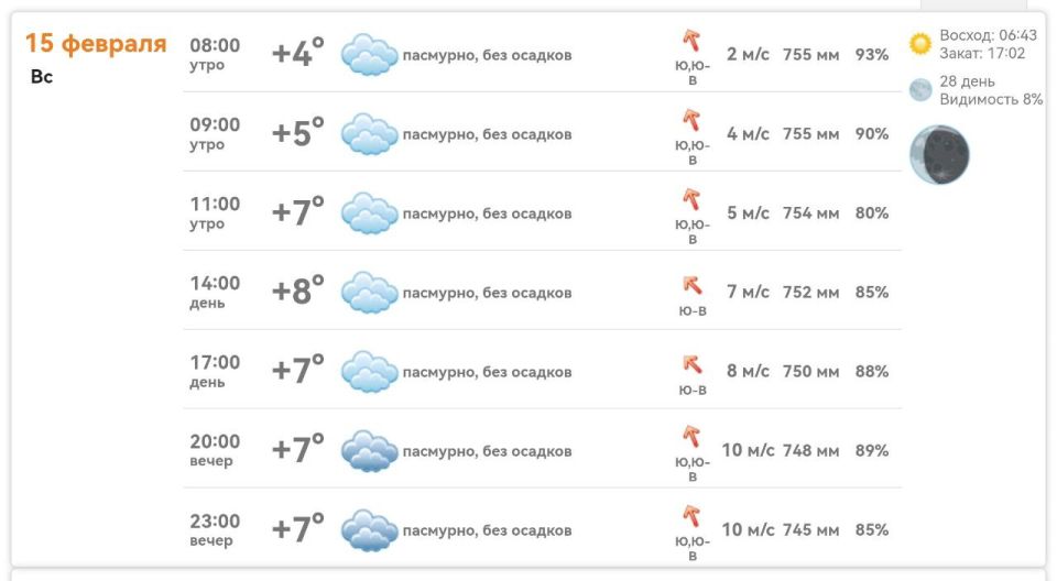 Погода в Михайловке Запорожской области на сегодня 15 февраля 2026 года.