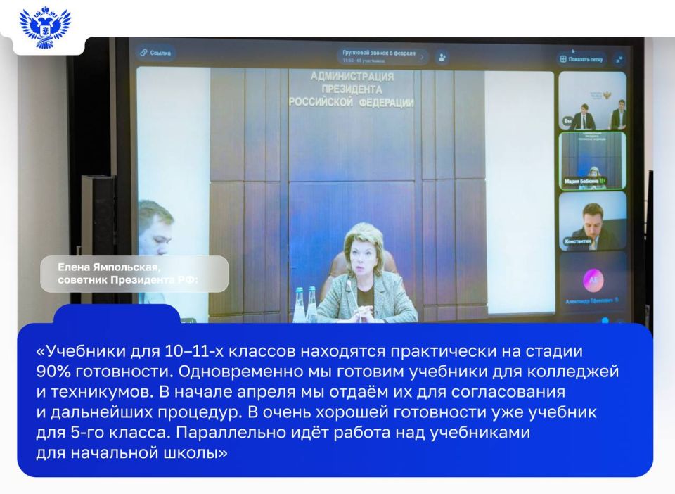Советник Президента РФ Елена Ямпольская рассказала, что составители учебников в своей работе опираются на запросы и пожелания учителей.