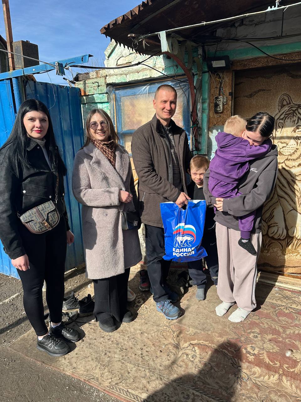 Активисты Токмакского местного отделения партии «Единая Россия», председатель Токмакского окружного Совета депутатов Валерий Опара и исполнительный секретарь местного отделения партии Анна Мовчан посетили дома семей военнослужащих, участвующих в специальной военной операции, чтобы поздравить их с праздником — Днем Защитника Отечества.