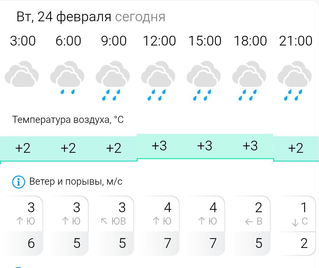 Сегодня, 24 февраля 2026 года в Васильевке пасмурно, небольшой дождь. Температура воздуха ... +2°С. Ветер: слабый, южный, юго-восточный, до 9 м/с. Атмосферное давление: 753 мм.рт.ст. Влажность воздуха: 89%. УФ-индекс: 0 (низкий). Видимость на...
