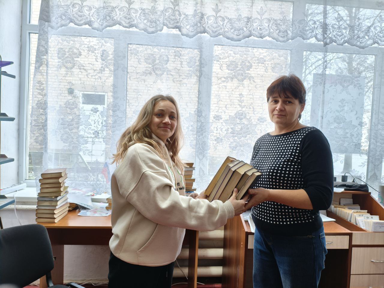 Работники ДК принесли в подарок Ефремовской библиотеке книги и пополнили книжный фонд прекрасной литературой.