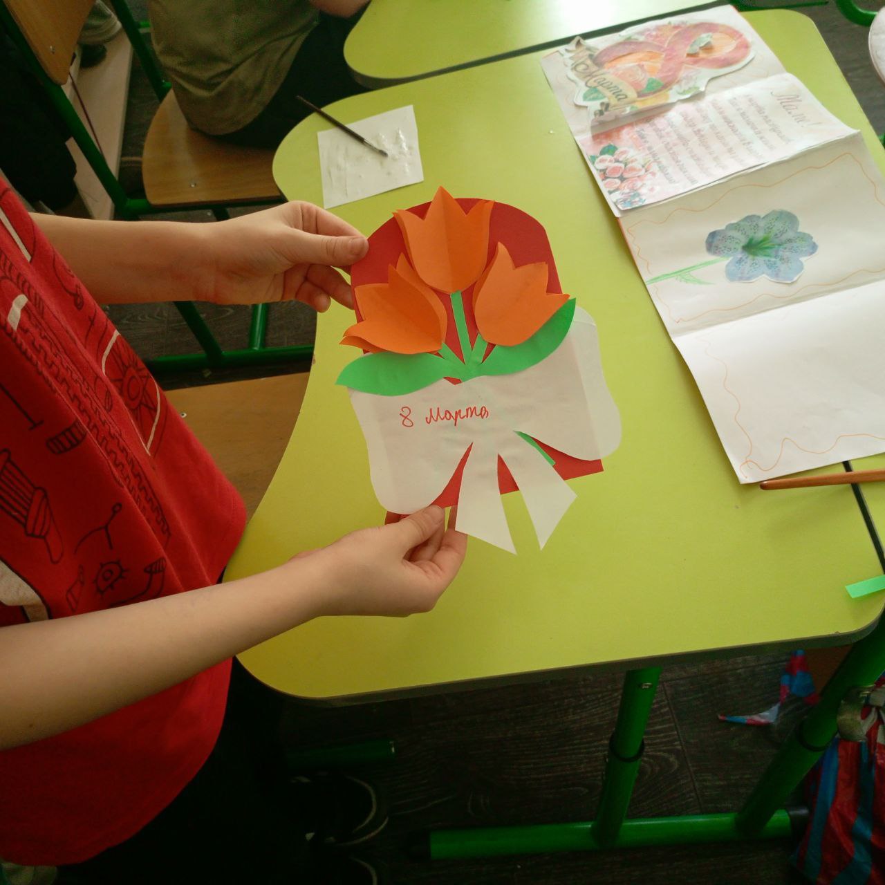 В Пологовской школе № 4 в преддверии Международного женского дня состоялся мастеркласс «Открытка маме», который провели сотрудники Пологовского районного дома культуры.