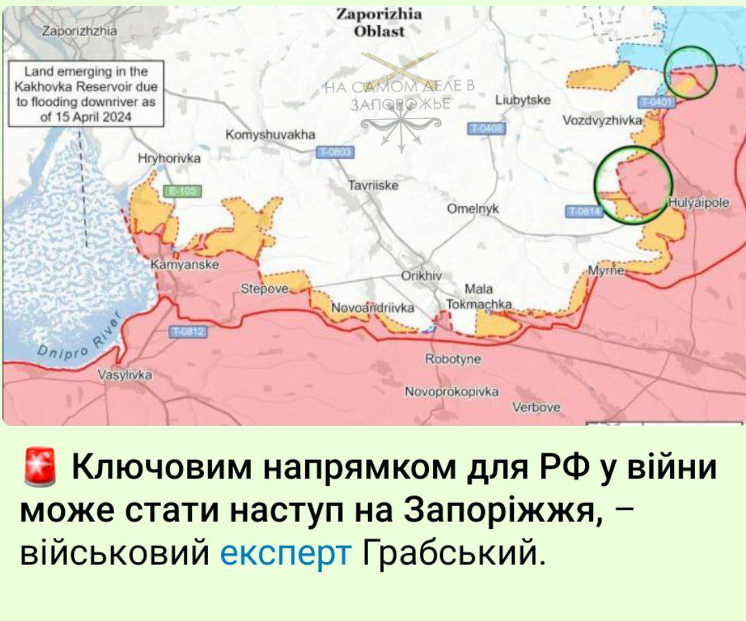 "Ключевым направлением для РФ может стать наступление на Запорожье", — вещает некий, видимо, "крупный военный специалист" Грабский (где они их набирают?).