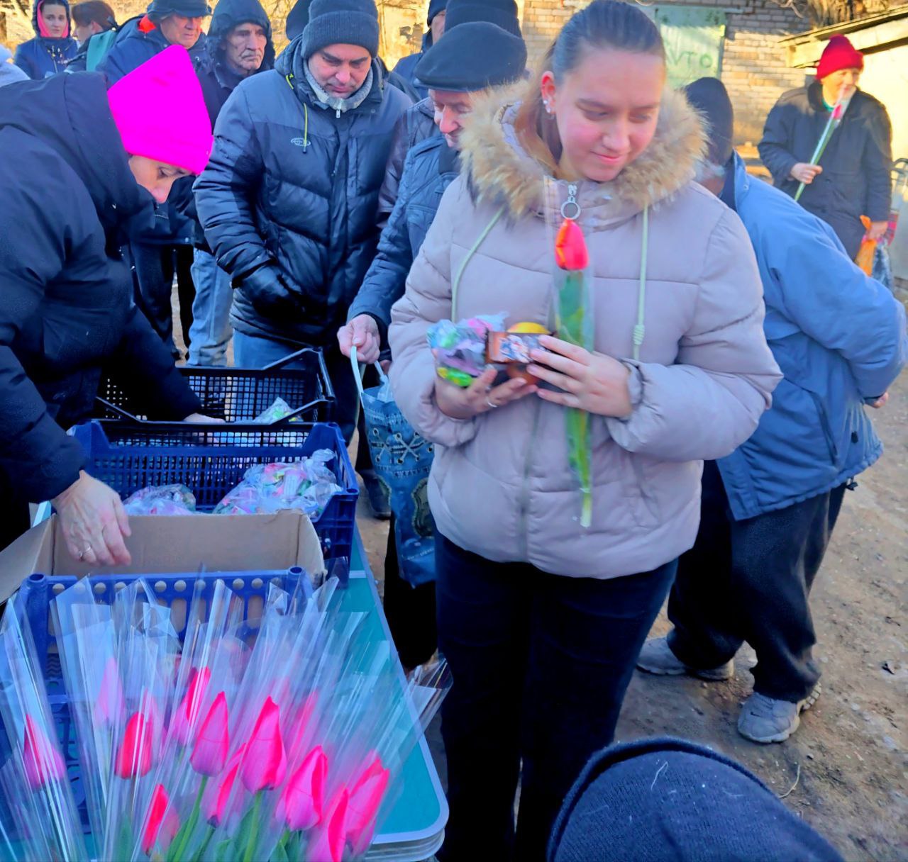 Благодаря вашей поддержке нам с Ксенией по традиции удалось не только накормить нуждающихся и оказать им жизненно необходимую помощь, но и подготовить небольшие праздничные наборы, в которые вошли фрукты, сладости и цветы.