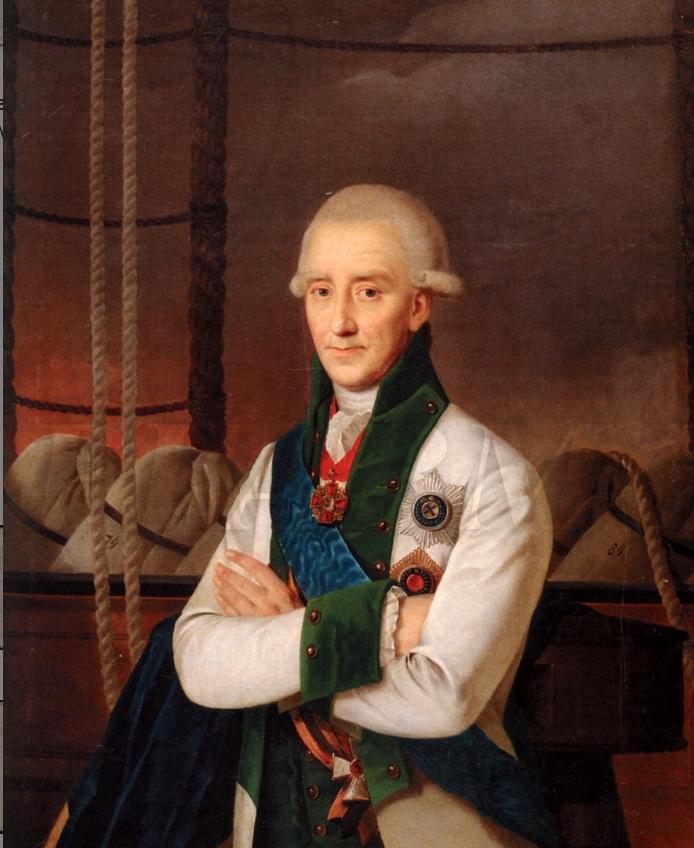 Василий Яковлевич Чичагов – один из выдающихся сподвижников Екатерины II. Он единственный моряк – кавалер ордена Святого Георгия 1-й степени. Вошел в историю как известный мореплаватель – исследователь Арктики, прославленный победами флотоводец и энергичный организатор реформ в интересах укрепления Российского флота. Василий Чичагов родился 11 марта (28 февраля по старому стилю) 1726 года в небогатой дворянской семье. Получил домашнее воспитание и образование, затем окончил Навигацкую школу в Москве. Дополнительное обучение проходил в Великобритании на королевском флоте, после чего в 1742 году 16-ти летним гардемарином поступил на службу в российский флот. В 1764 году был назначен помощником главного командира Архангельского порта. Находясь на этой должности, дважды – в 1765 и 1766 годах – отправлялся в «секретные экспедиции» на трёх кораблях к Камчатке и Северной Америке. Походы через Северный Ледовитый океан к Алеутским островам между Гренландией и Шпицбергеном, организованные по инициативе М. В. Ломоносова, имели целью обнаружение «морского прохода Северным океаном в Камчатку». Эти экспедиции эпохи правления Екатерины II были первыми в истории России полярными экспедициями в высокие широты. Сплошные льды не позволили морякам достигнуть намеченной цели, однако экспедиции смогли собрать большой материал о природе Гренландского моря и составить подробные карты этого края. Впоследствии Чичагов занимал пост главного командира Архангельского, Ревельского и Кронштадтского портов. Во время Русско-турецкой войны в 1772 - 1774 годах Чичагов командовал одним из отрядов Донской флотилии, которая обороняла Керченский пролив. В 1782 году получил звание адмирала. Во время войны со шведами Екатерина II назначила Чичагова командующим флотом. В этой должности он одержал победы над превосходящими силами противника в Эландском, Ревельском и Выборгском сражениях, взяв при этом в плен множество кораблей, фрегатов и других судов, более 5000 солдат и до 200 офицеров, в том числе шведского контр-адмирала. Эти победы принудили шведского короля Густава III к скорому заключению мира. Василий Чичагов вышел в отставку в 1797 году. Скончался 16 апреля 1809 года, был похоронен на Лазаревском кладбище Александро-Невской лавры. Надпись на надгробной памятнике, сочинённая лично Екатериной II, гласит: «С тройною силою шли шведы на него. Узнав, он рек: Бог защитник мой. Не проглотят они нас. Отразив, пленил и победы получил». Многие помнят Чичагова по историческому анекдоту. Когда императрица Екатерина II пригласила адмирала в Зимний дворец и попросила рассказать об одном из сражений, то флотоводец некоторое время смущался, но затем освоился и стал рассказывать красочно и эмоционально, незаметно для себя перейдя на использование нецензурных выражений. Опомнившись, он принялся просить прощения, но Екатерина тактично сделала вид, что не поняла непристойных выражений, сказав: «Ничего, Василий Яковлевич, продолжайте, я ваших морских терминов не разумею». Память о Василии Чичагове хранят множество географических названий в его честь. Его именем названы: