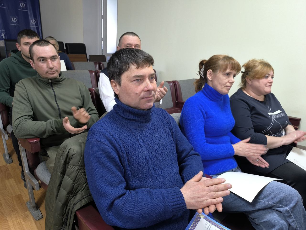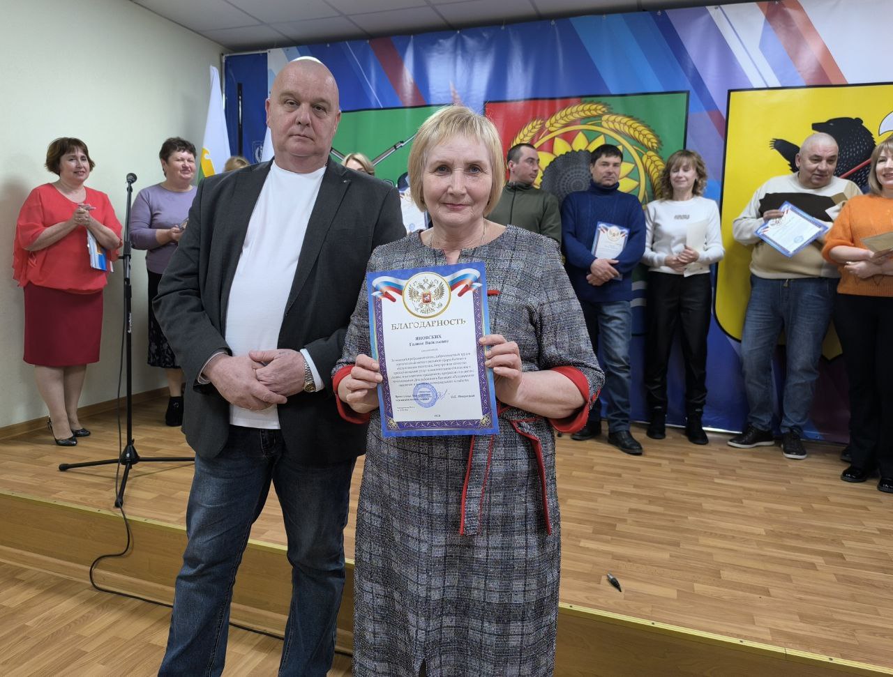 Со словами поздравлений ко всем собравшимся обратились первый заместитель главы Акимовского муниципального округа Оксана Навроцкая и заместитель главы Андрей Халевин. Они выполнили приятную миссию — вручили грамоты и благодарности от главы округа Александра Трудоношина людям, которые своим каждодневным трудом делают жизнь наших жителей удобнее.