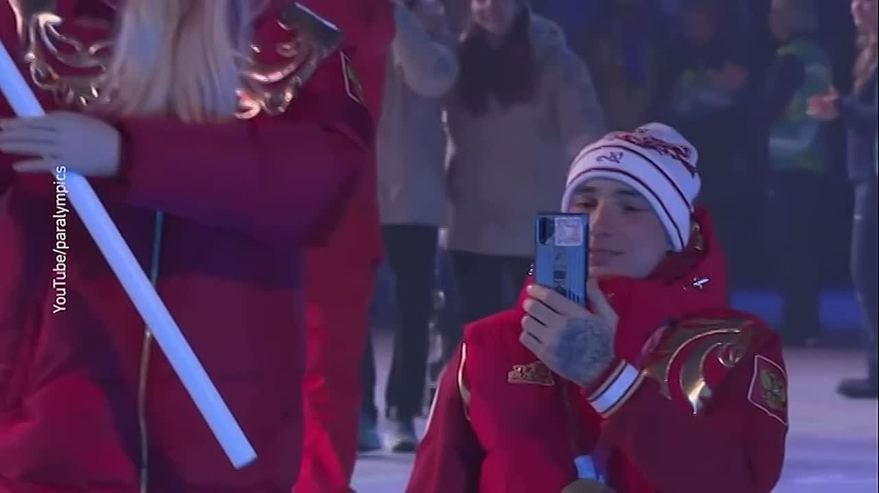Российский флаг на церемонии закрытия Паралимпиады пронесли Варвара Ворончихина и Иван Голубков