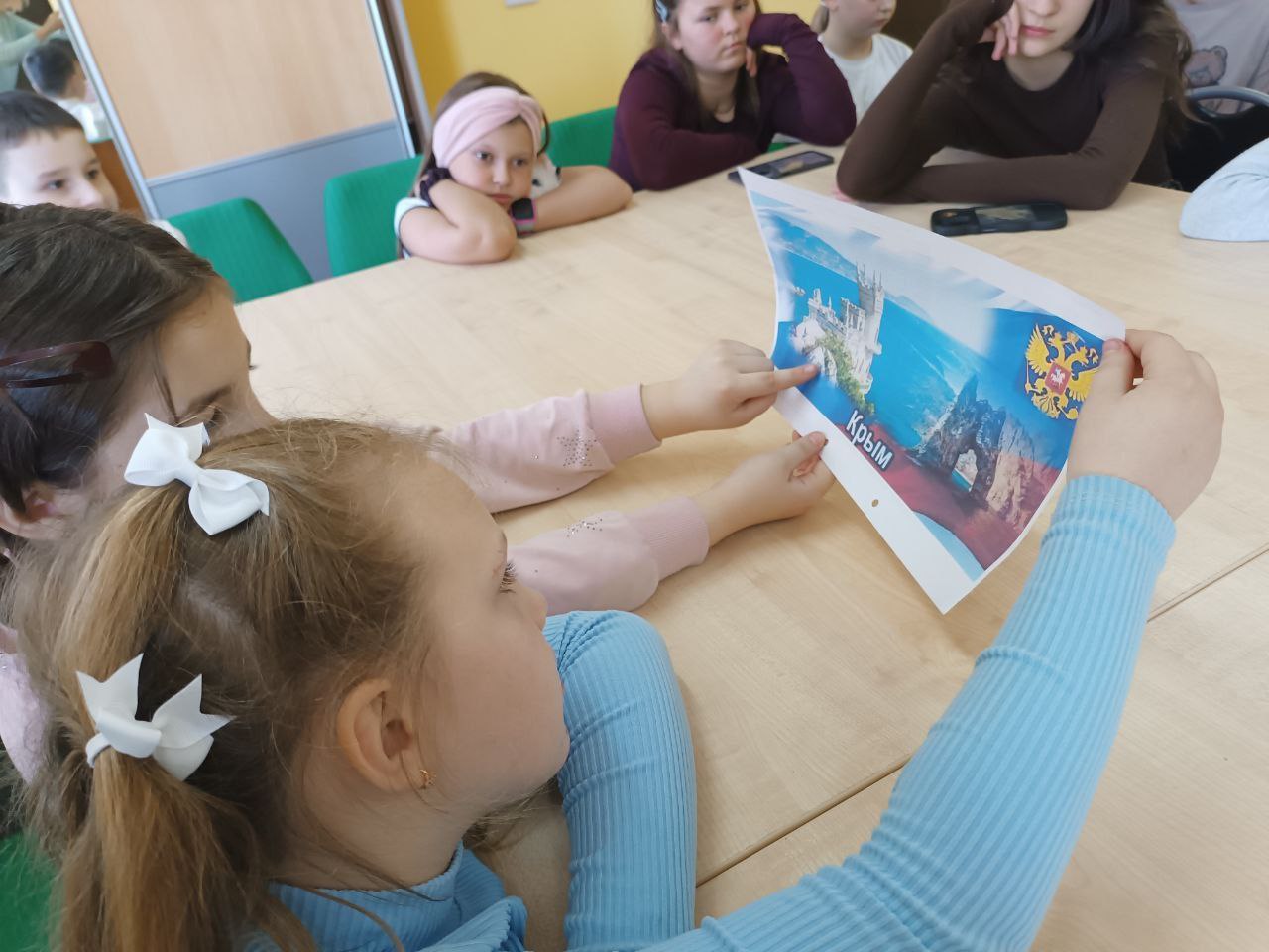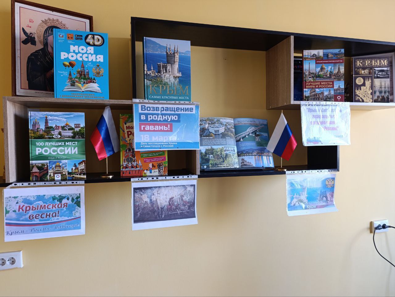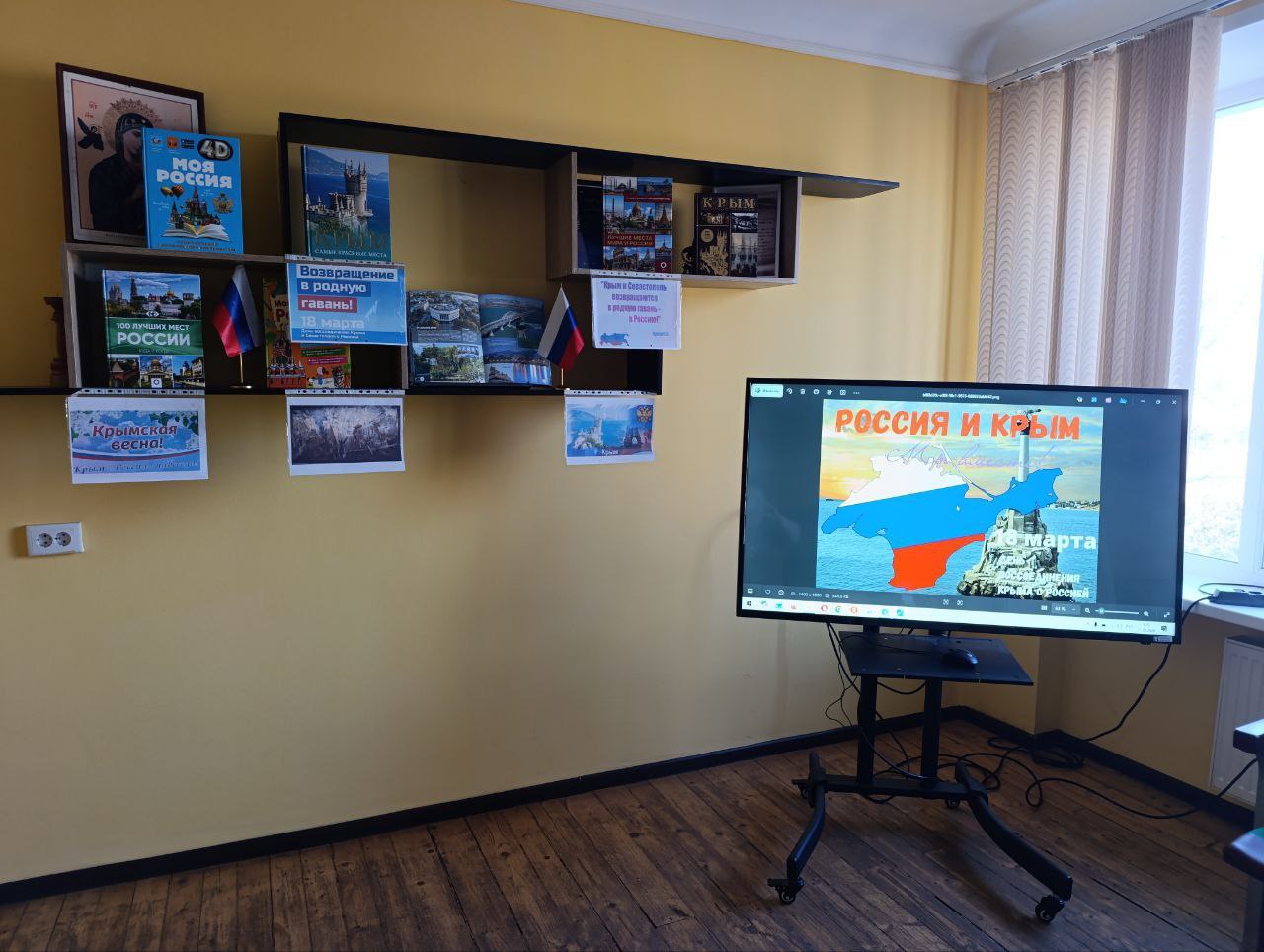 Вместе с сельской библиотекой мы провели тематическую беседу, посвященную Дню воссоединения Крыма с Россией.