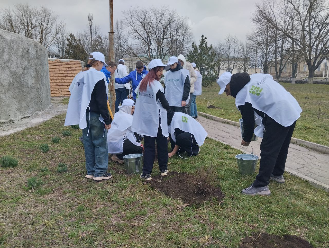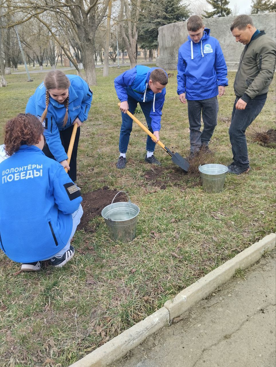 В рамках мероприятия высадили 20 кустов спиреи, 15 лип и 10 калин. Молодые деревья и кустарники украсили территорию парка, где расположены памятники, посвящённые героям ВОВ.