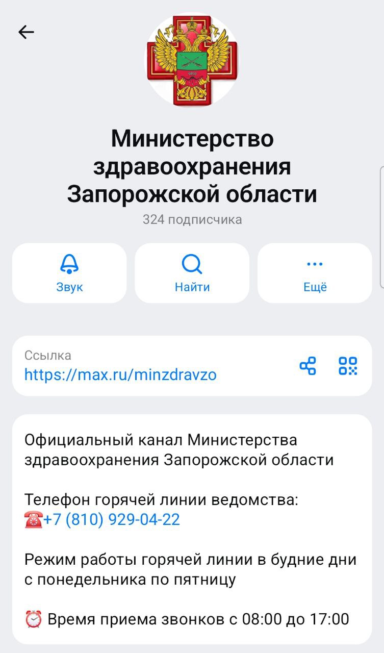 Официальный канал Министерства здравоохранения Запорожской области теперь в МАХ