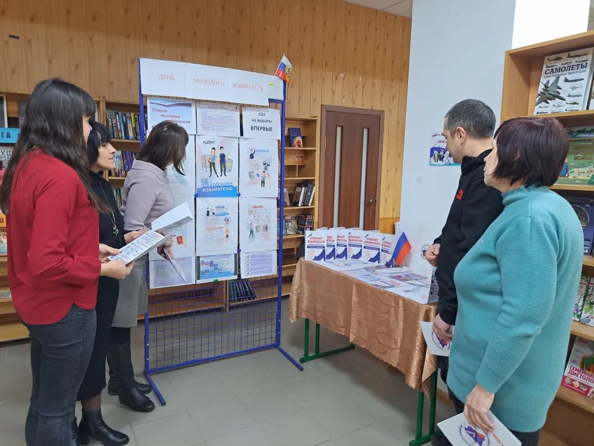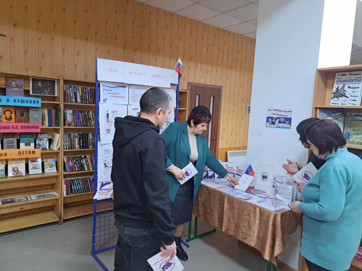 В рамках мероприятий ко Дню молодого избирателя председатель территориальной избирательной комиссии №12 Пологовского муниципального округа вместе с библиотекарем Нилой Юрьевной Славной организовала в Центральной библиотеке города Пологи "Уголок будущего избирателя".