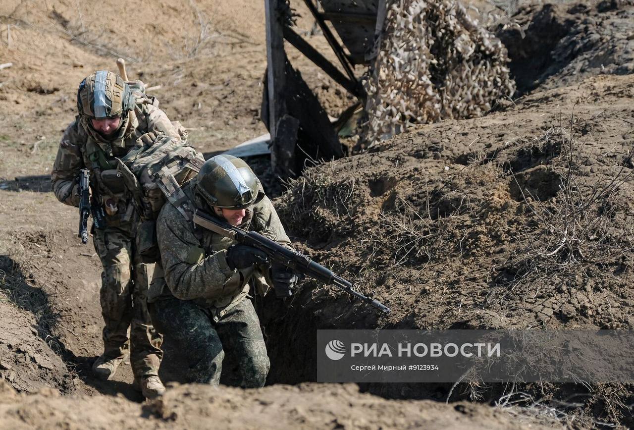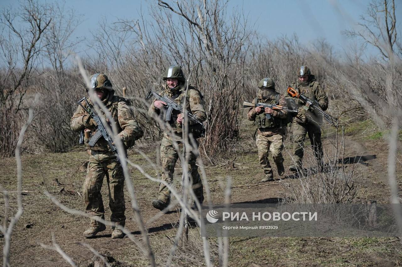 Бойцы мотострелкового полка группировки войск «Днепр» отрабатывают штурм опорного пункта на полигоне в Запорожской области
