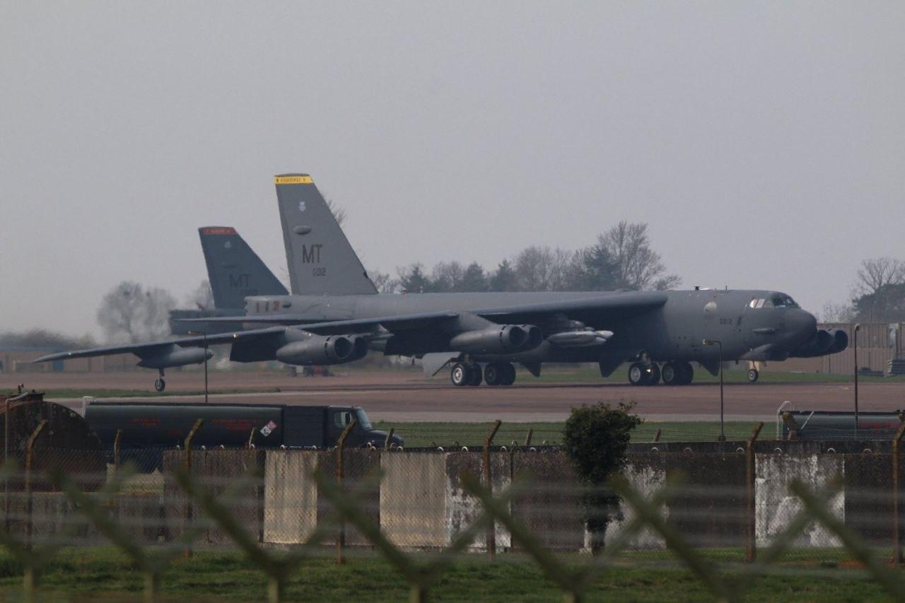 Стратегические бомбардировщики В-52Н и В-1, а также высотный самолет-разведчик U-2 ВВС США на авиабазе Фэрфорд в Великобритании