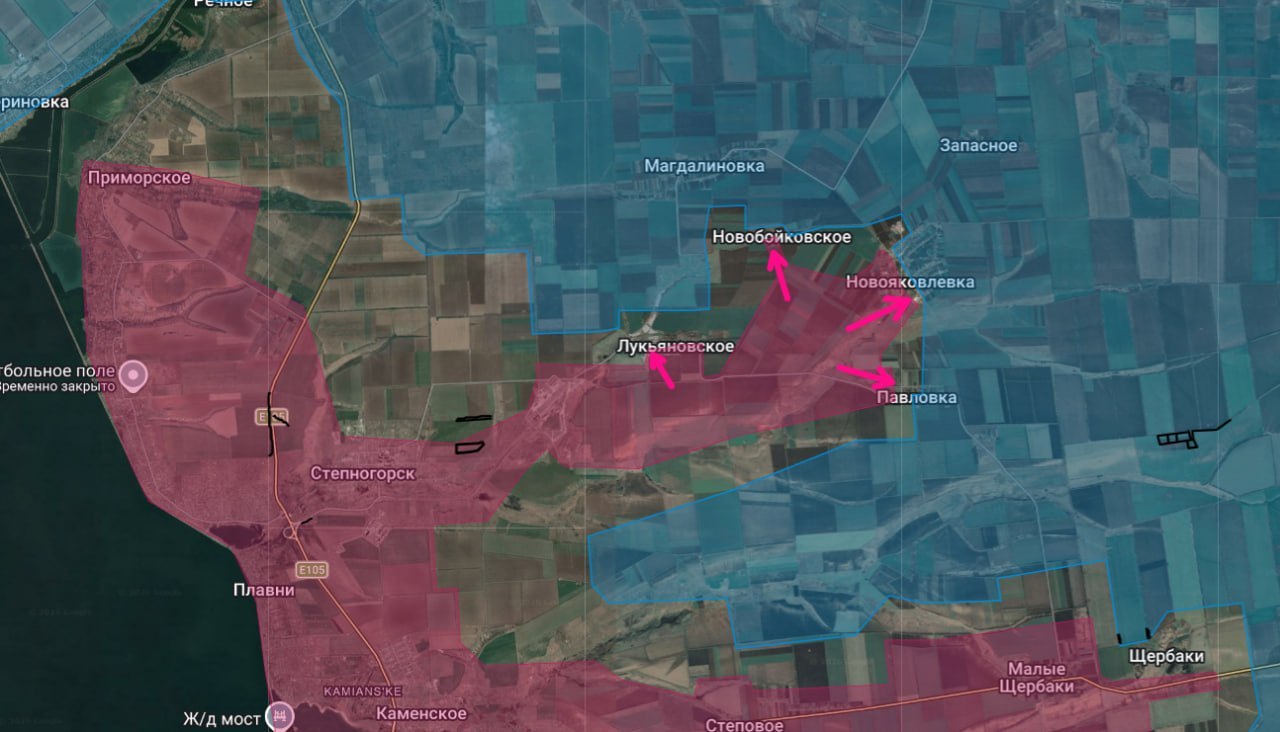 Запорожское направление, восточнее Степногорска. Ситуация без особых изменений. Продолжаются бои за Лукьяновское, Новобойковское, Новояковлевку и Павловку, сообщает Анатолий Радов