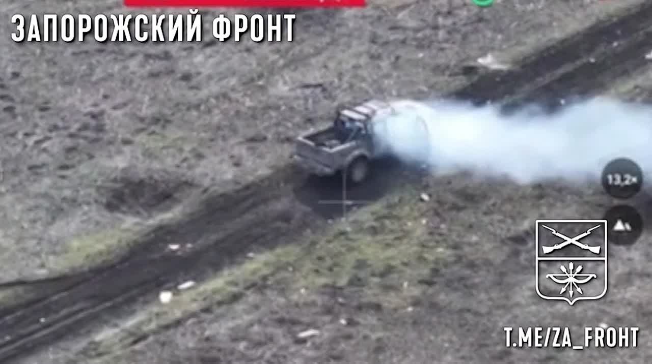 Оператор FPV-дрона БОРОДА развердроты "Немца" сжег пикап подвоза БК ВСУ на Запорожском направлении