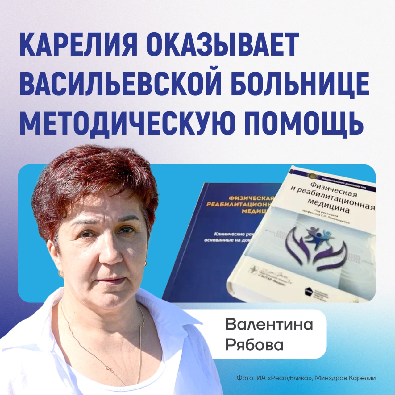 Посылку с методической литературой по организации медицинской реабилитации отправила в Васильевскую городскую больницу главный врач Пряжинской ЦРБ Валентина Рябова. В больнице работает одно из самых оснащенных и продвинутых в Карелии отделений по реабилитации пациентов после перенесенных травм или заболеваний.
