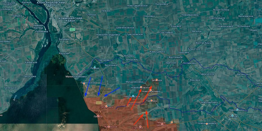 На восточном участке инициатива частично переходит к российским войскам. Здесь удалось выбить украинские диверсионные группы из лесополос к северу от Степовой, после чего начались бои за позиции северо-восточнее населенного пункта. Параллельно возобновлены атаки на северном направлении: российские силы вновь вошли в районы Новояковлевки, Новобойковского, а также ведут бои в лесополосах южнее Лукьяновского.