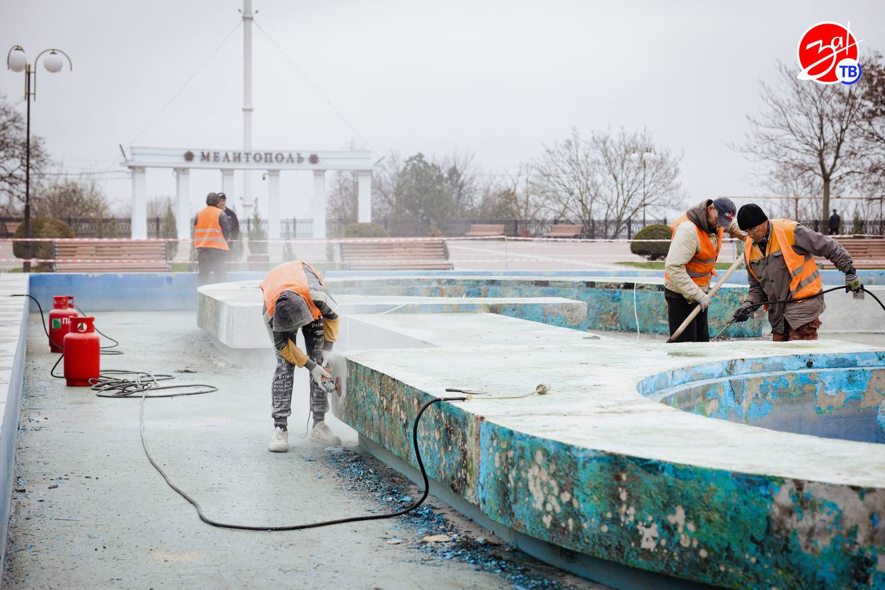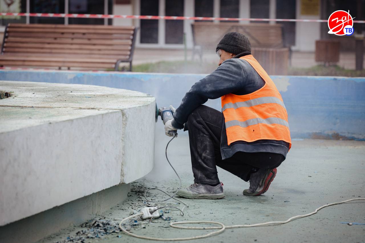 На объекте шумят перфораторы — строители снимают старое покрытие. Реконструкция фонтана на площади Победы проводится впервые за 20 лет. Проект реализуется при поддержке Правительства региона и городского округа Мелитополь.