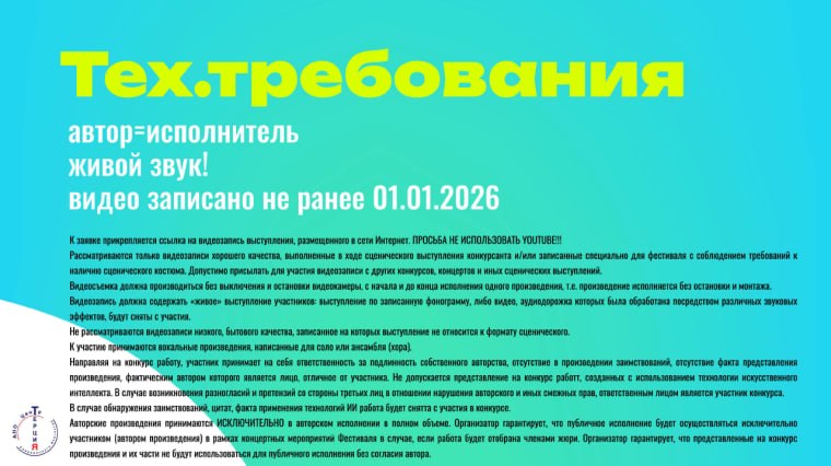 Авторство: Песня должна быть написана тобой (или коллективом). Использование ИИ запрещено.