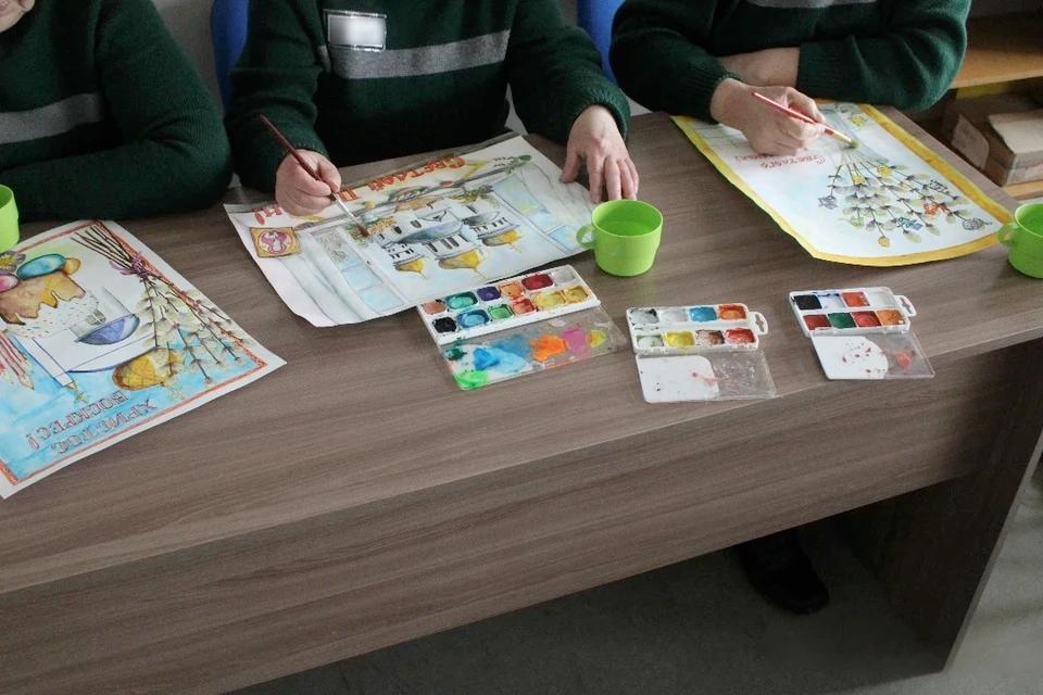 Рисунки осужденные выполняют акварелью, гуашью и карандашом. На рисунках можно увидеть традиционные пасхальные символы – куличи, крашенные яйца, веточки вербы.