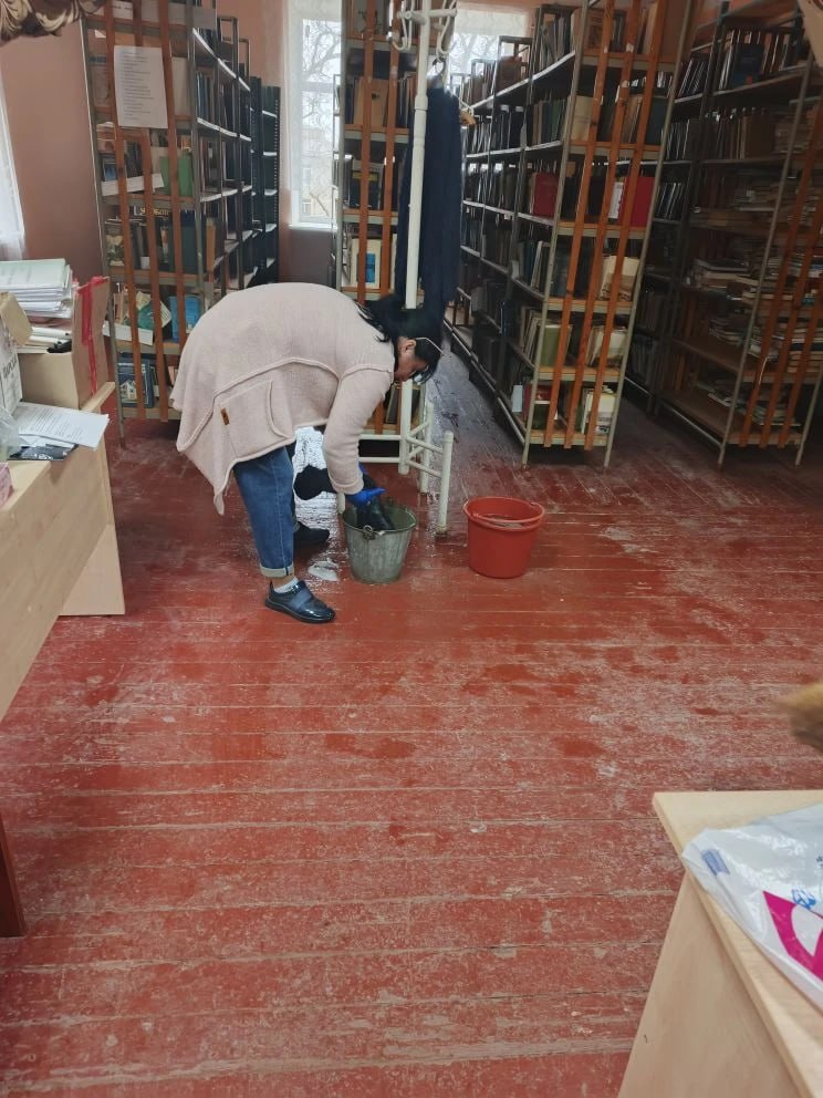Сотрудники библиотеки провели субботник на своей территории, в ходе которого навели порядок во всех помещениях учреждения. Были выполнены комплексные работы по уборке: вытерта пыль с полок, стеллажей, подоконников и карнизов, вымыты окна и осветительные приборы, а также проведена тщательная уборка и мытьё полов — в читальных залах, хранилище и служебных помещениях.