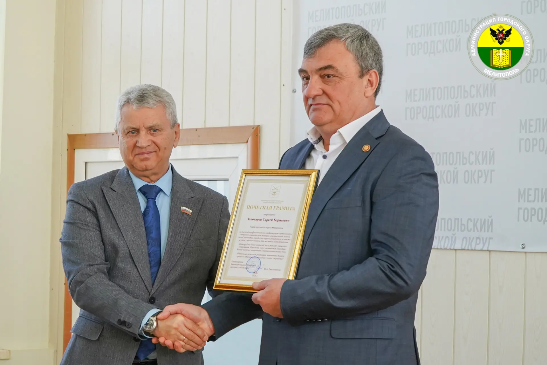 Председатель Законодательного Собрания Виктор Андреевич Емельяненко вручил Почётную грамоту за высокий профессионализм, плодотворную деятельность и значительный личный вклад в развитие городского округа.