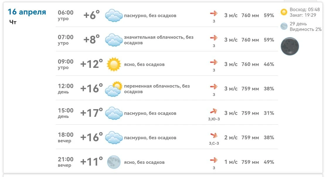 Пусть будет день продуктивным!Подробно о погоде в Днепрорудном 16 апреля 2026 годаНародные приметы 16 апреляДлительные раскаты грома в этот день – жди ненастья на несколько дней вперед.Если ветер дует с севера, то скоро пойдет дождь.Цветки...