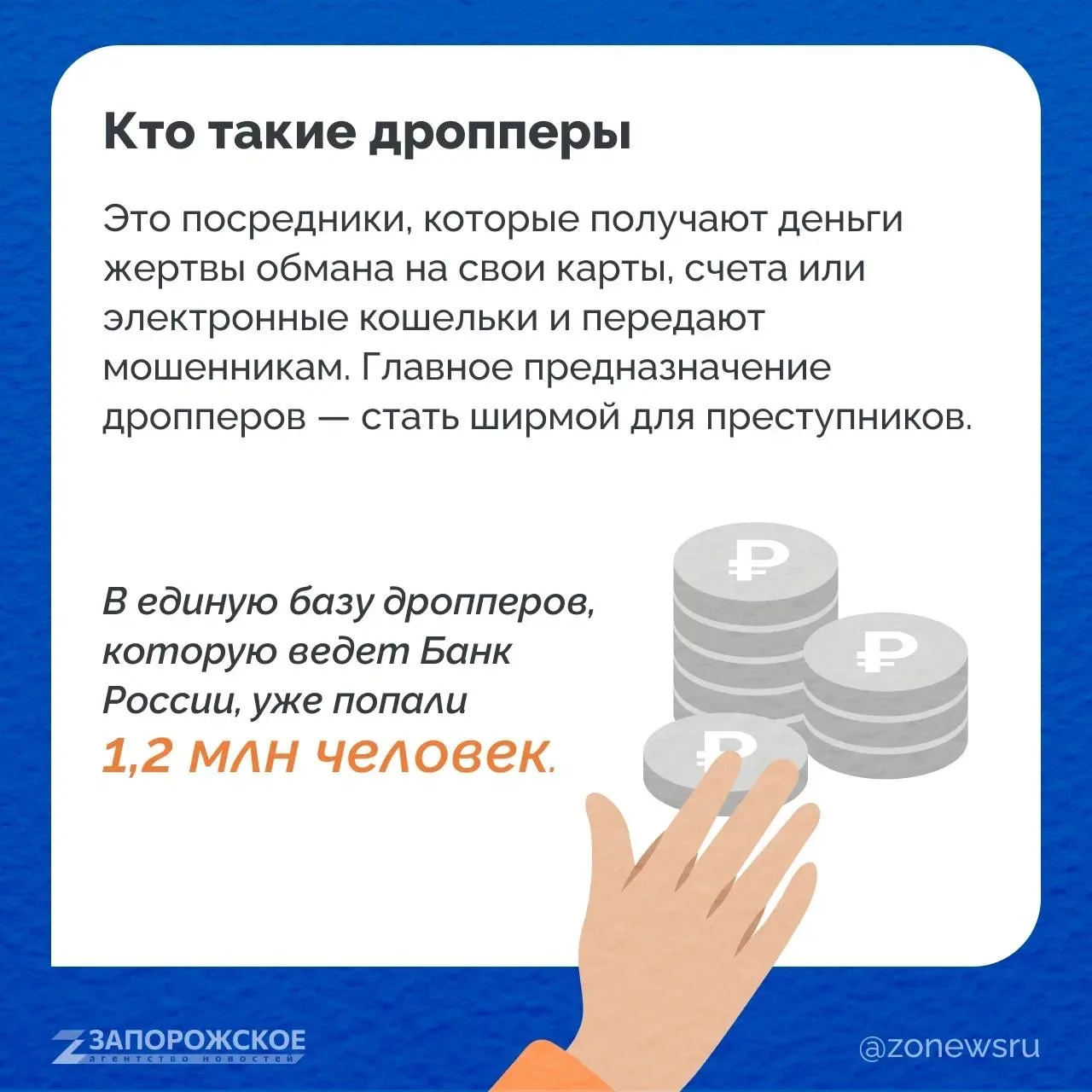 Речь идет о дропперах — людях, которые помогают преступникам обналичивать украденные деньги. Часто — даже не зная об этом. В зоне риска — каждый, кто расплачивается картами, особенно подростки, пожилые люди и активные пользователи интернета.