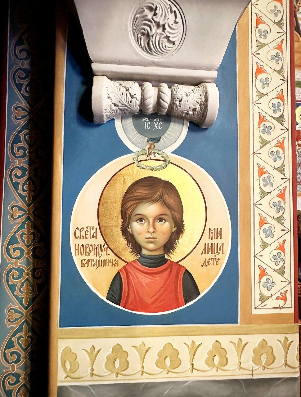 На фото вы видите фреску Введенского женского монастыря в Белграде . На ней надпись: Новомученица Батайничская Милица, младенец.