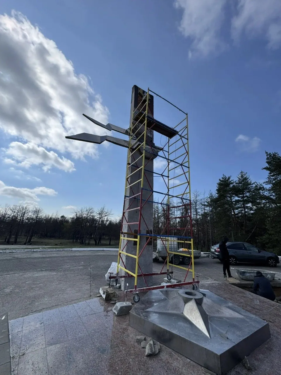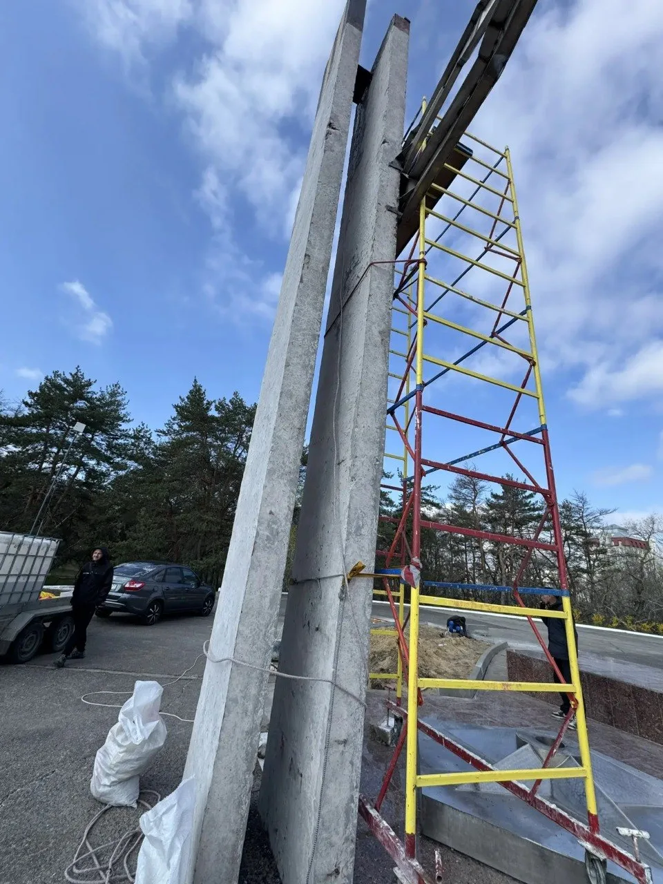 Ремонтные работы на мемориальной стеле идут ударными темпами