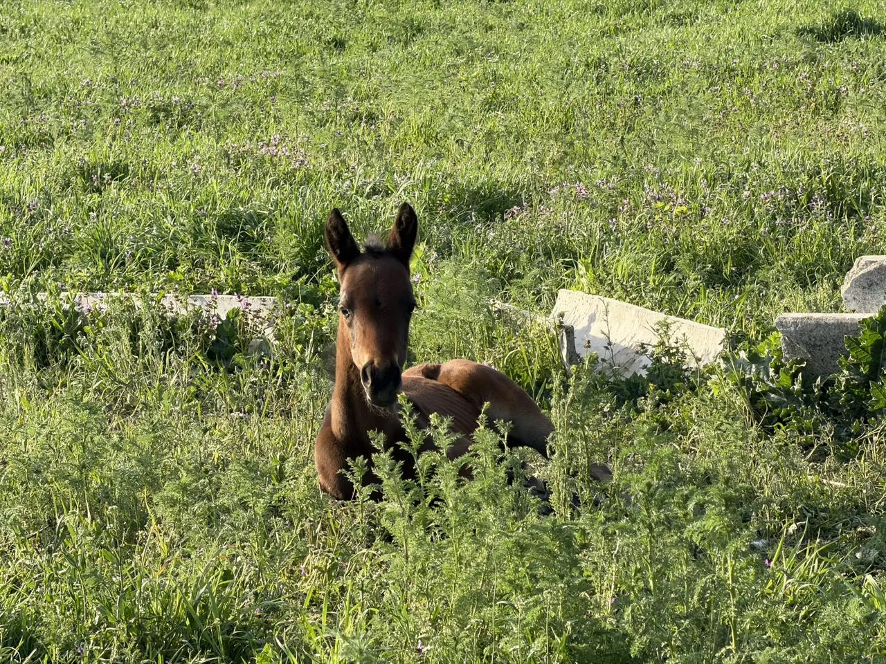 Жеребенок родился у одной из кобыл, которая выжила после удара ВСУ по конной ферме в Акимовке