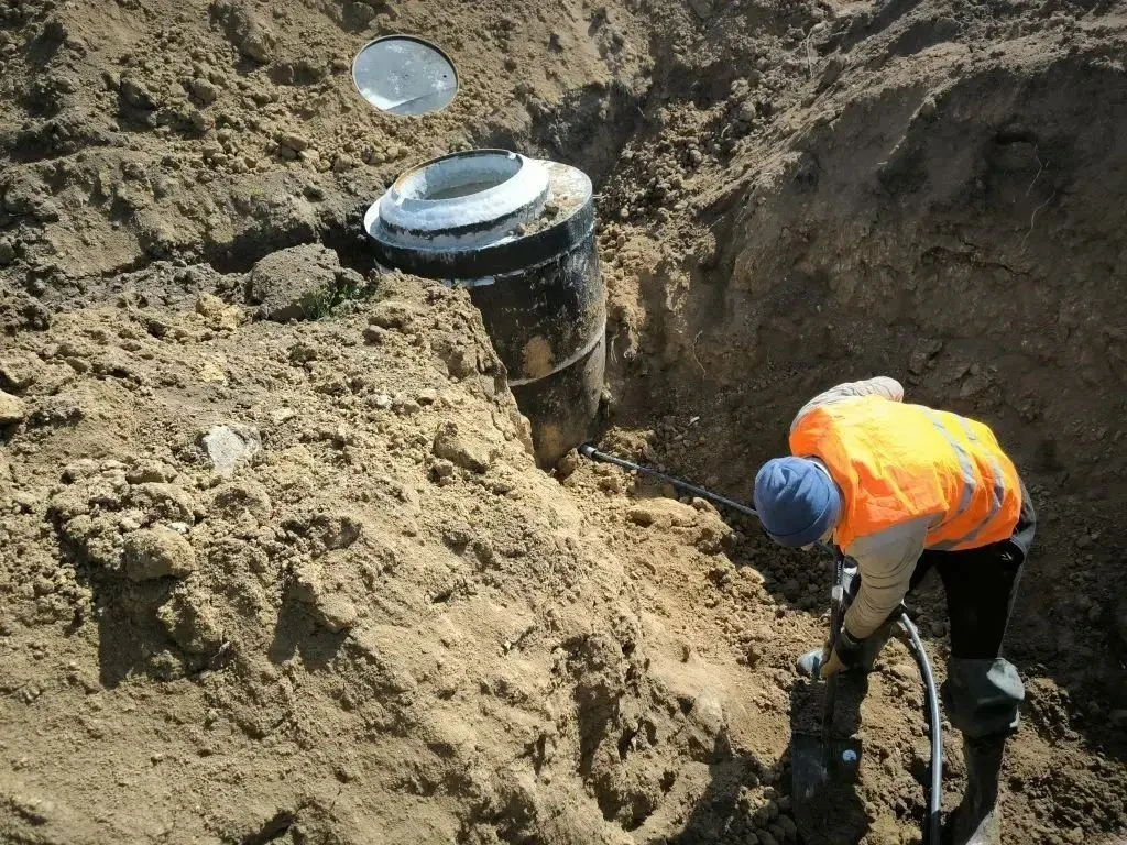 Уже сделано гидроизоляция колодцев, копка траншеи, монтаж колодцев, сварка трубопровода, укладка трубопровода