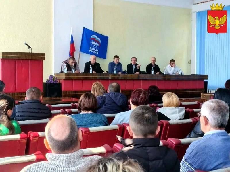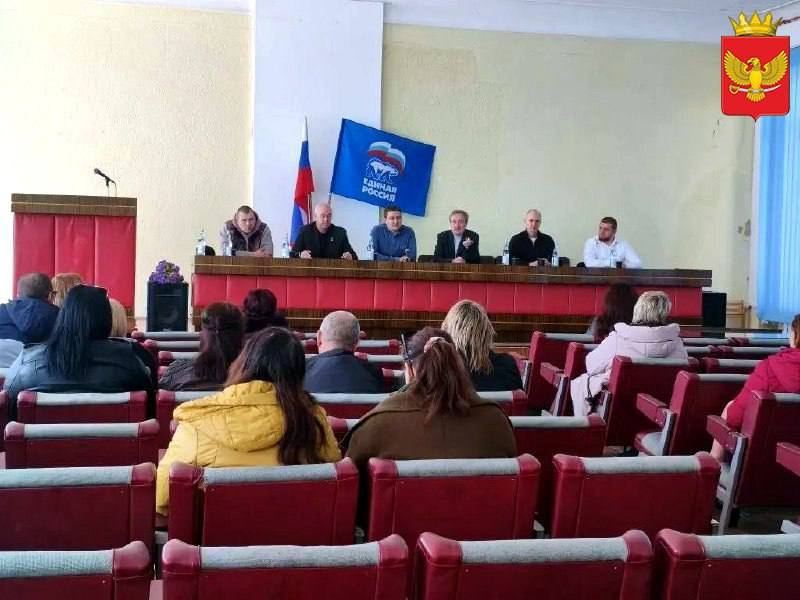 В четверг, 23 апреля, в большом зале администрации Приморского муниципалитета состоялось совещание, в котором приняли участие депутат Законодательного Собрания Запорожской области от партии "Единая Россия", координатор федерального партийного проекта "Историческая память" в Запорожской области Роман Стариков, заместитель председателя комитета по государственному управлению и местному самоуправлению Законодательного собрания Запорожской области от партии "Единая Россия" Александр Сауленко, глава Приморского муниципального округа, секретарь местного отделения партии "Единая Россия" Владимир Прокопенко, его заместители Руслан Мотылевич и Иса Дадашов, а также председатель окружного Совета депутатов Никита Комелов и представители Приморского местного отделения партии "Единая Россия".