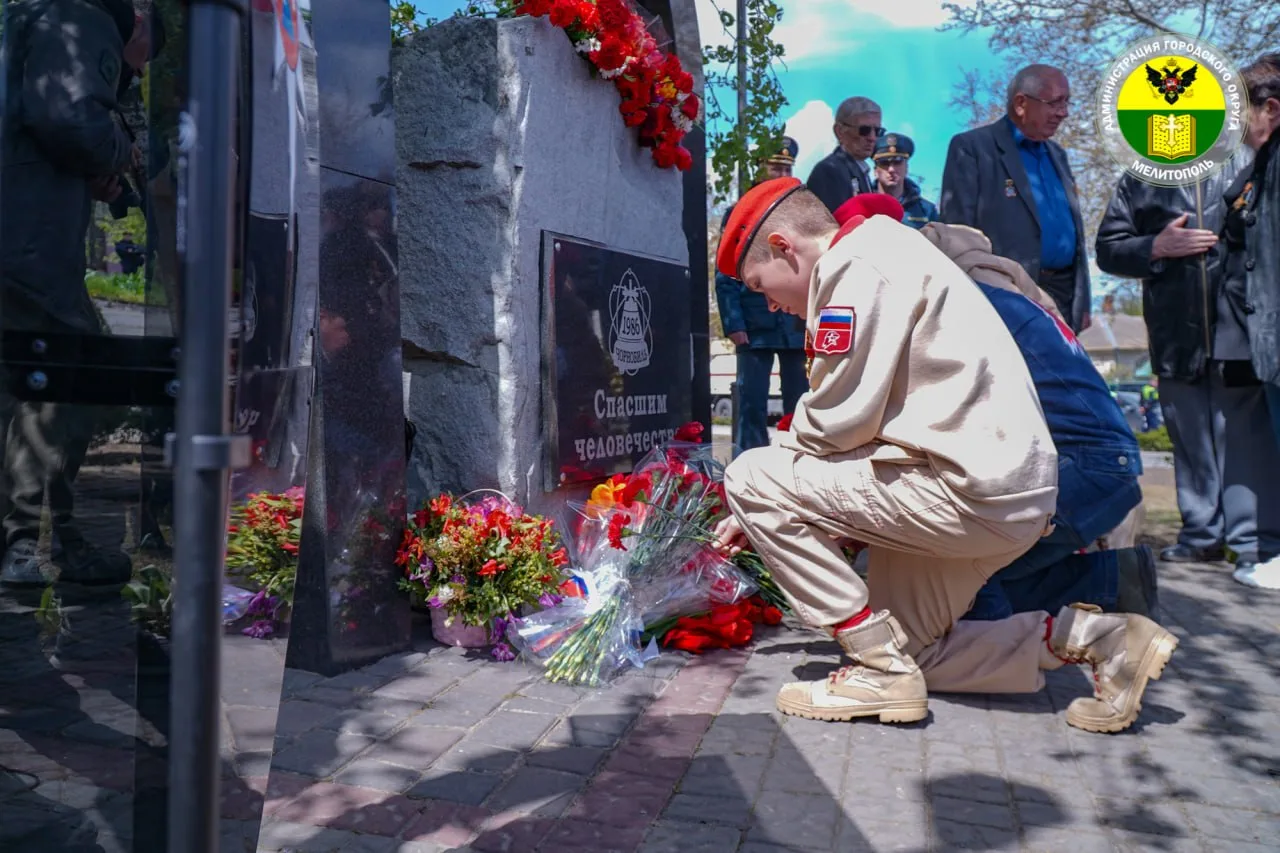 В Мелитополе у мемориала «Спасшим человечество» прошло памятное мероприятие. Сотрудники администрации городского округа, представители МЧС России, ветераны-чернобыльцы и жители города собрались, чтобы отдать дань уважения участникам ликвидации последствий одной из самых страшных техногенных катастроф.