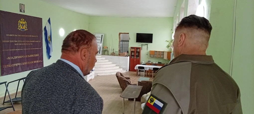 Владимиро-Ильинский гериатрический пансионат с ответственной миссией посетила Военная комендатура Херсонской области. В ходе обхода территории представители ведомства ознакомились с ходом подготовки к открытию Реабилитационного центра для участников СВО, оценив условия, созданные для восстановления защитников Отечества.