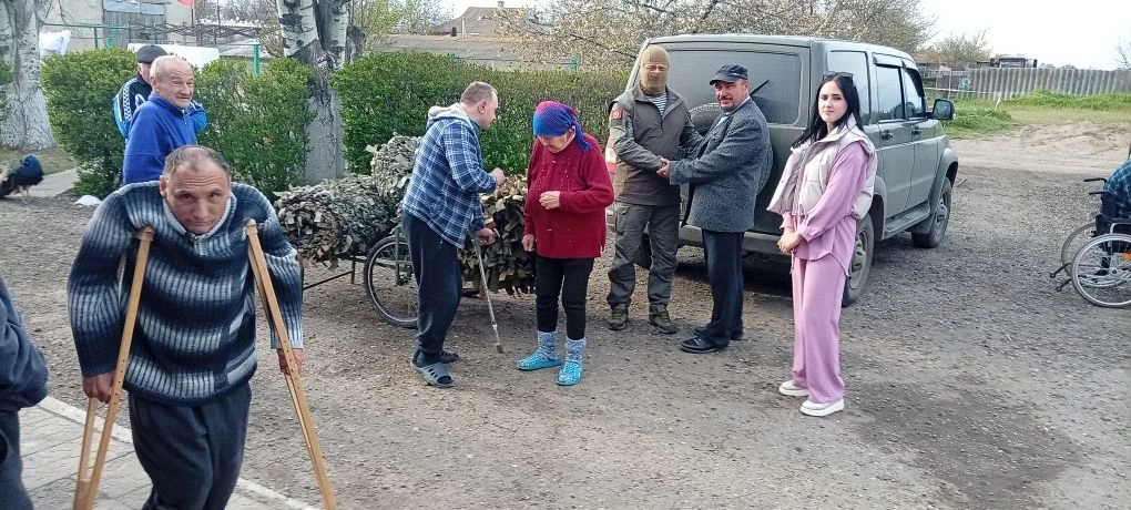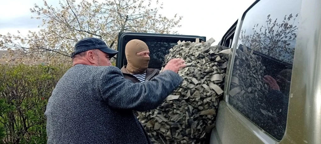 Особое впечатление на гостей произвела встреча с подопечными учреждения. В знак глубокого уважения и поддержки военнослужащим пожилые люди передали три большие маскировочные сети, которые собственноручно сплели всего за несколько дней.