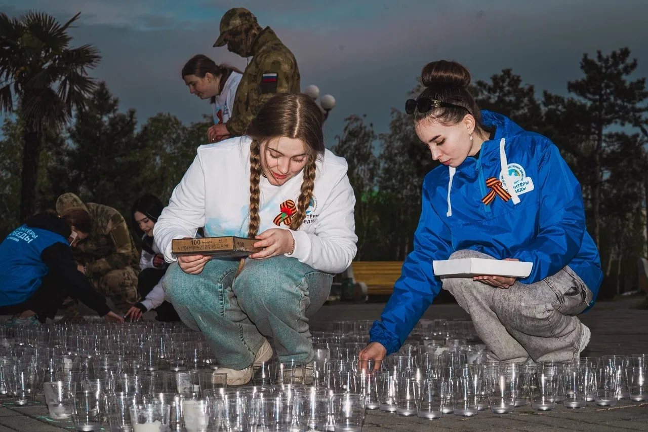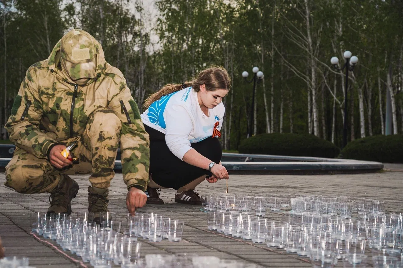 Добровольцы движения «Волонтёры Победы» совместно с активистами движения «Юг Молодой», представителями партии «Единая Россия», администраций губернатора и правительства Запорожской и Ленинградской областей, а также военнослужащими Федеральной службы войск национальной гвардии Российской Федерации создали огненную композицию, использовав более 1000 свечей. Это символ неугасающей боли утраты, символ памяти о бессмертном подвиге тех, кто ценой своей жизни ликвидировал последствия техногенной катастрофы 1986 года.