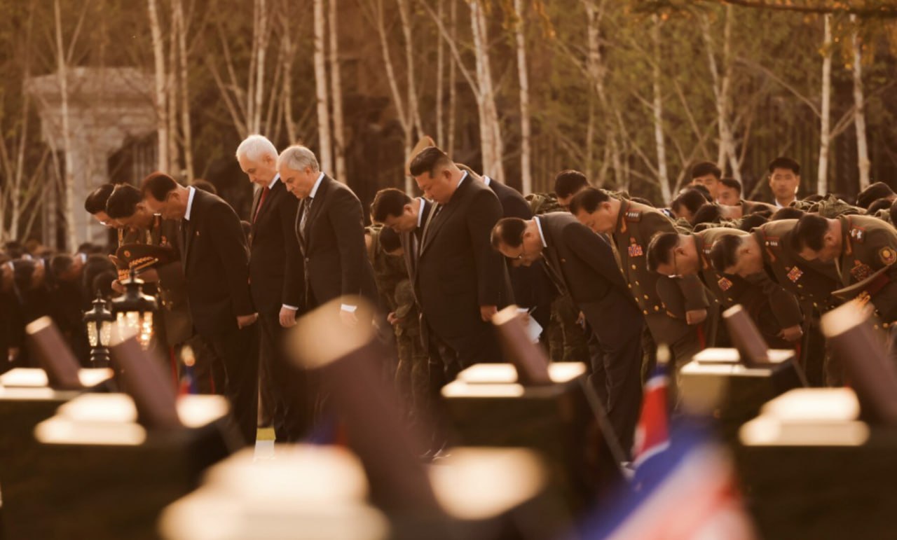 Ленту у входа в здание перерезали министр обороны КНДР Но Гван Чхор и министр обороны РФ Андрей Белоусов.