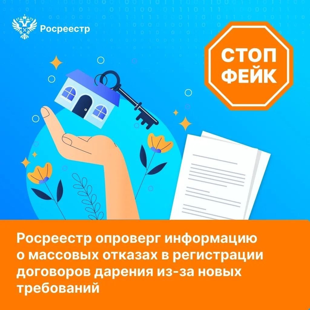 В СМИ начинает распространяться информация о том, что якобы из-за новых требований Росреестра собственники массово получают отказы по регистрации договоров дарения.