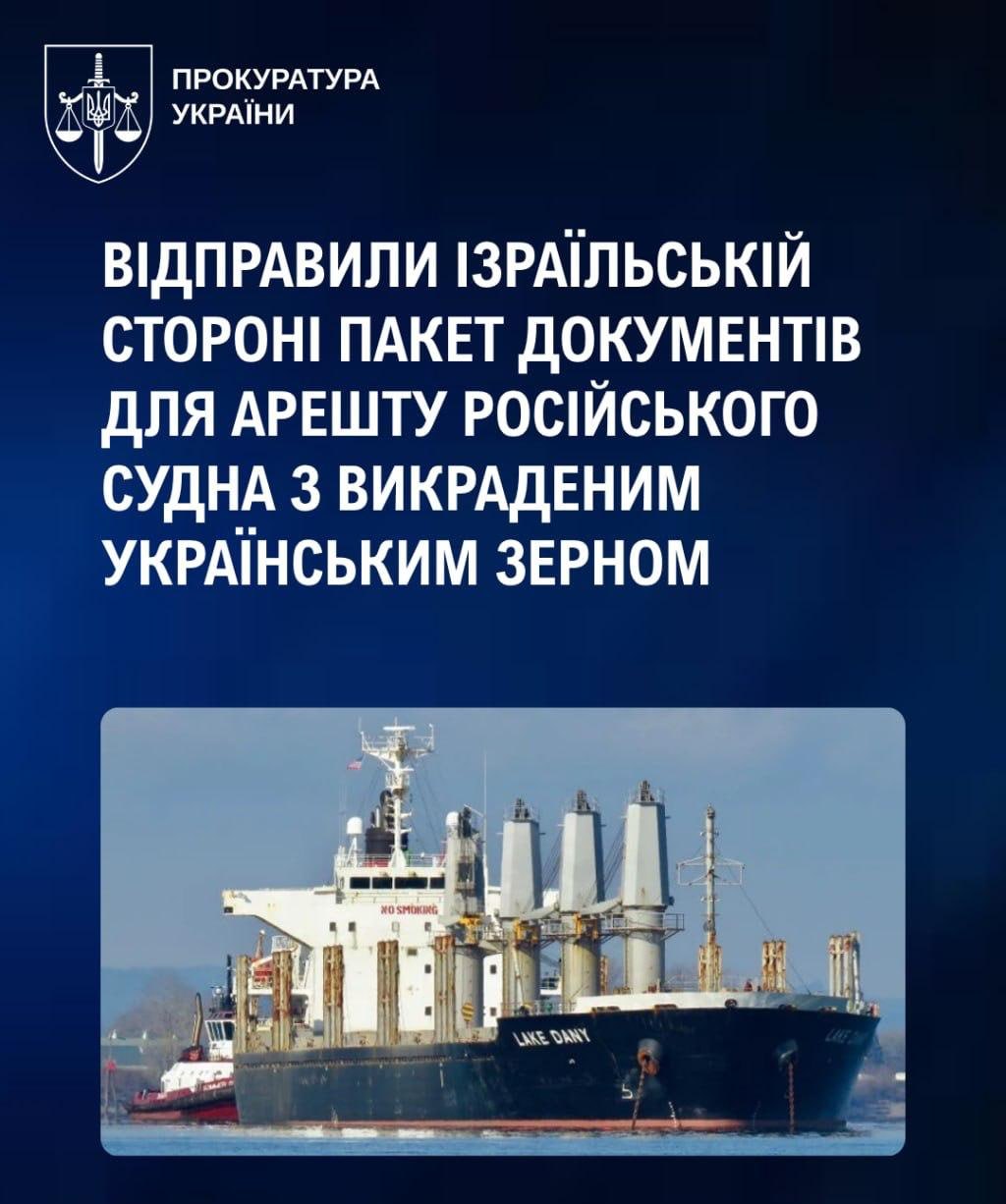 Генпрокуратура Украины сообщает, что отправила израильской стороне пакет документов для ареста судна PANORMITIS под флагом Панамы.