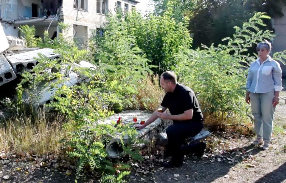 Глава Токмакского муниципального округа, секретарь местного отделения партии «Единая Россия» Александр Калмыков, заместитель Главы Вита Провандовская, руководитель шефской делегации, Первый заместитель Председателя Правительства Пензенской области Виктор Кувайцев и специалисты аварийно-восстановительной службы Пензенского пожарно-спасательного центра возложили цветы у здания бывшего терапевтического корпуса Токмакской центральной районной больницы. Оно было разрушено во время ракетного удара со стороны ВСУ в ночь на 3 января 2023 года.