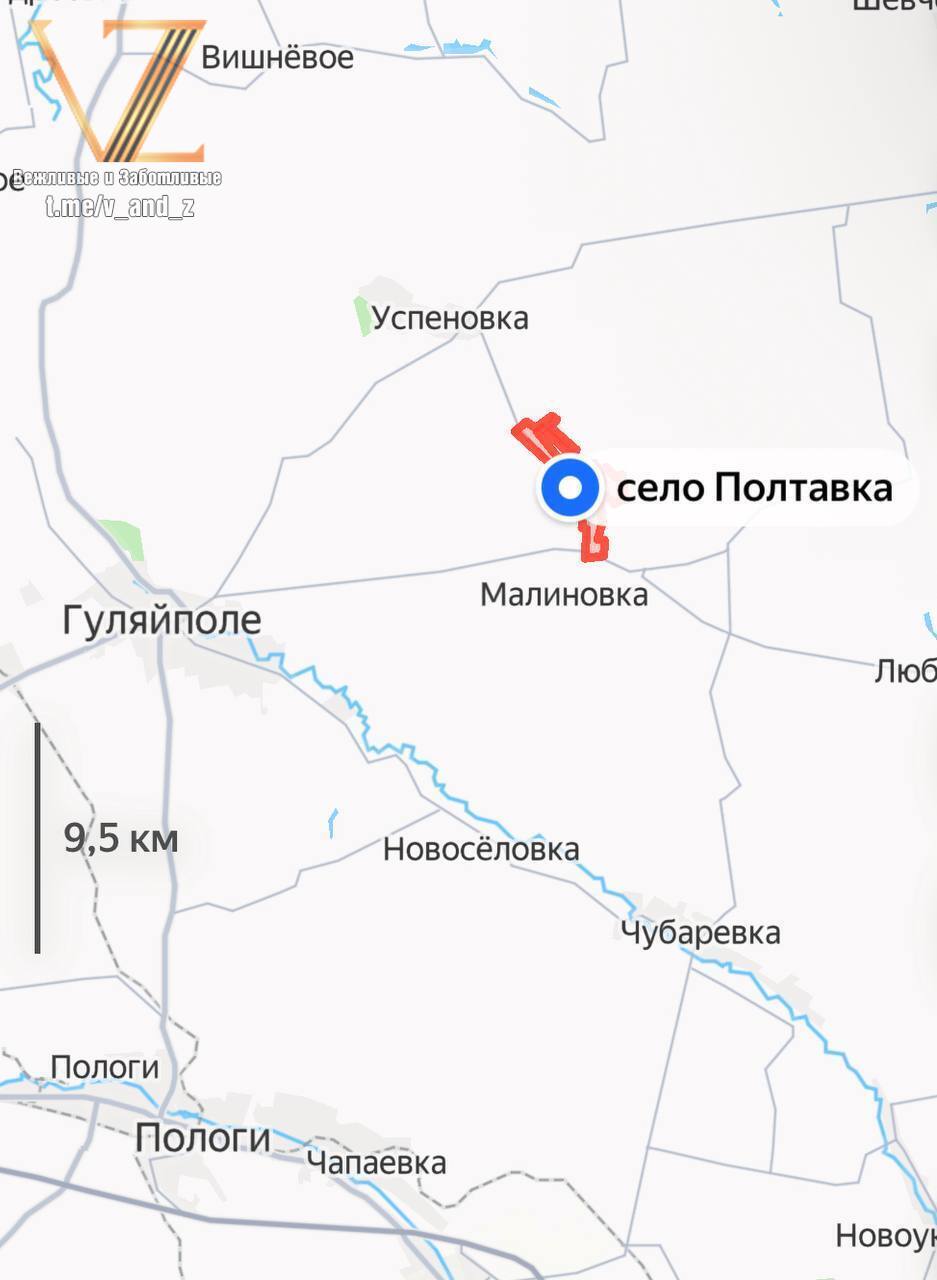 По поступающим оперативным данным наши войска прорвались с востока в село Полтавка в районе города Гуляйполе.