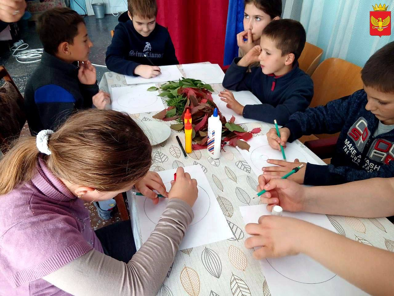 Насобирав разноцветных осенних листьев, юные участники с настоящим творческим азартом создавали из них аппликацию, и в детских руках оживал яркий и эффектный лев.