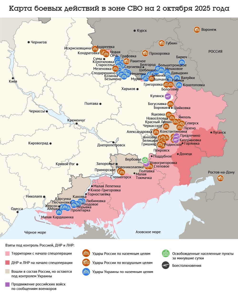 Карта боевых действий в зоне СВО на 2 октября 2025 года