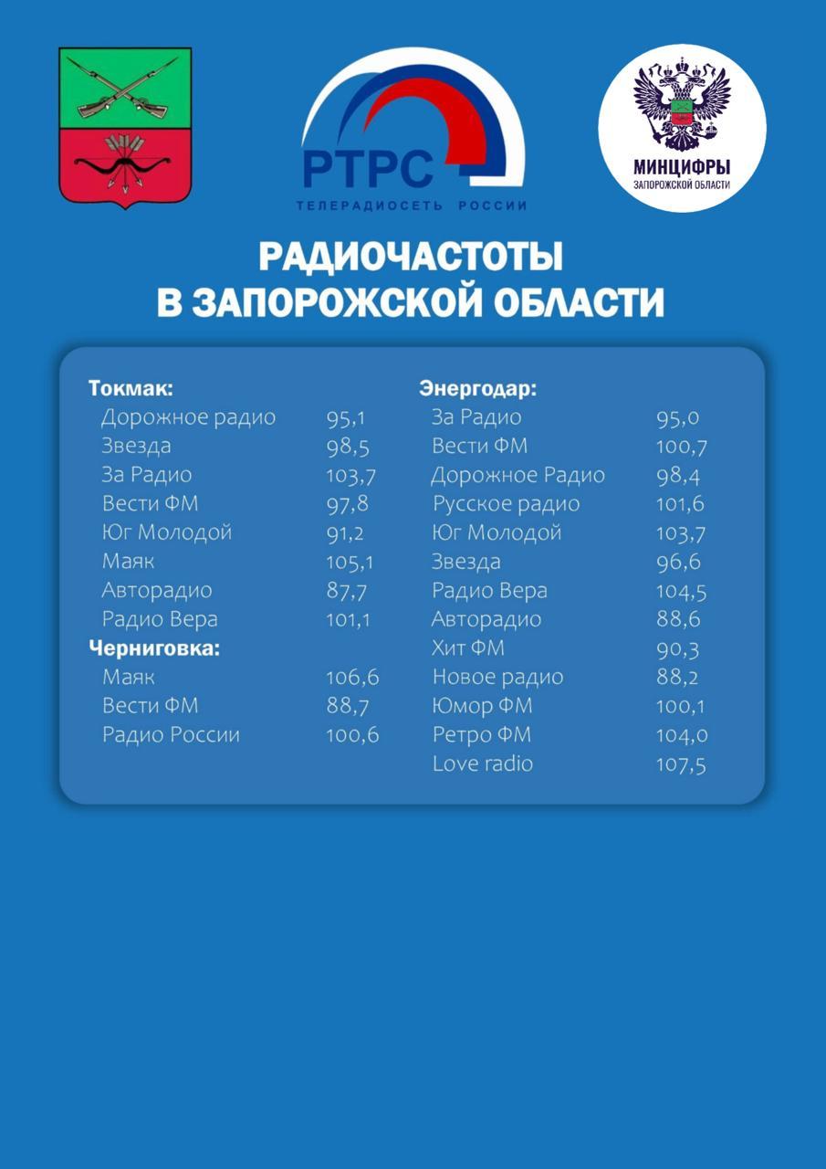 Собрали для вас актуальную информацию с частотами цифрового ТВ и популярных радиостанций в Запорожской области.