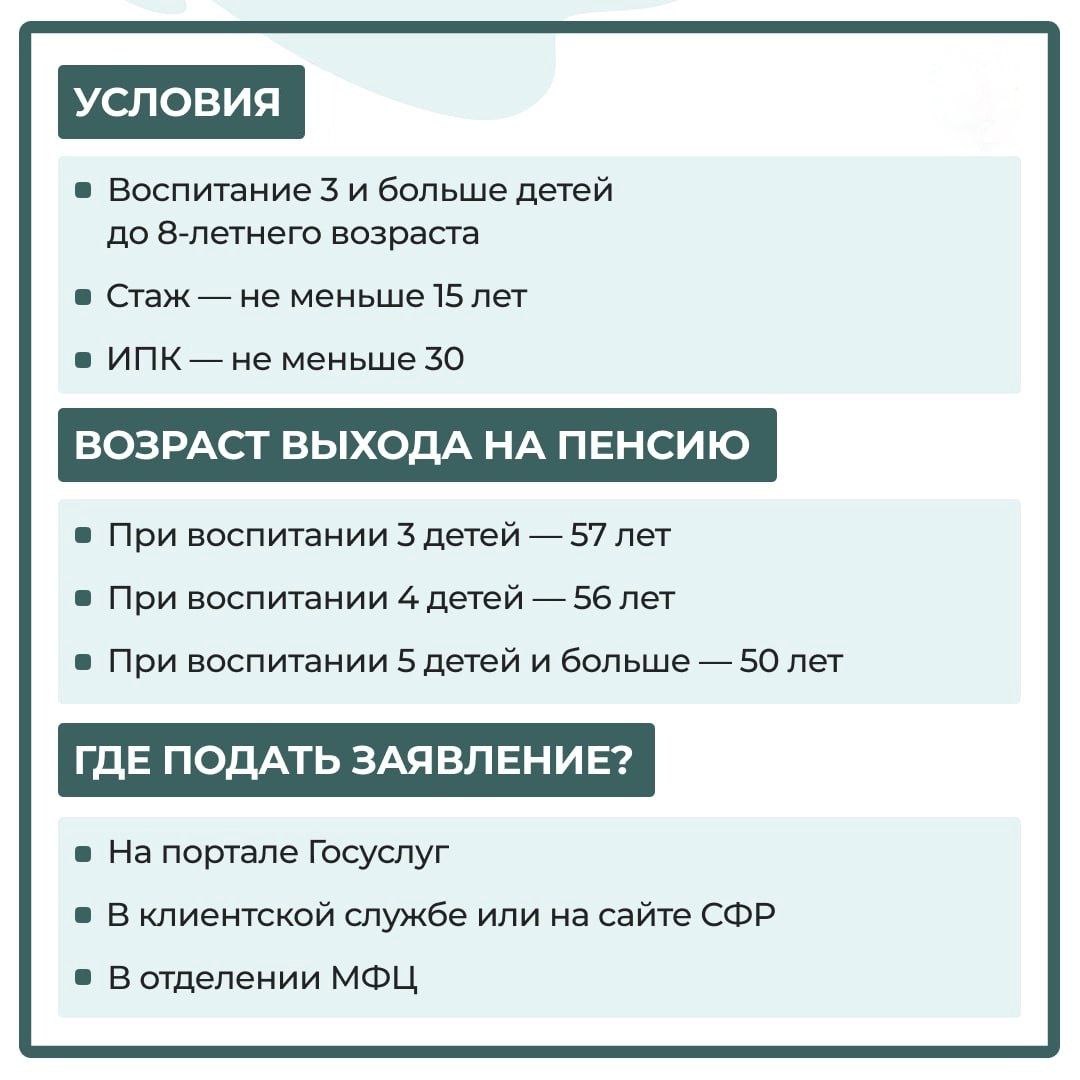 Женщины, которые родили и воспитали до 8-летнего возраста 3 и больше детей, могут уйти на заслуженный отдых раньше общеустановленного срока.