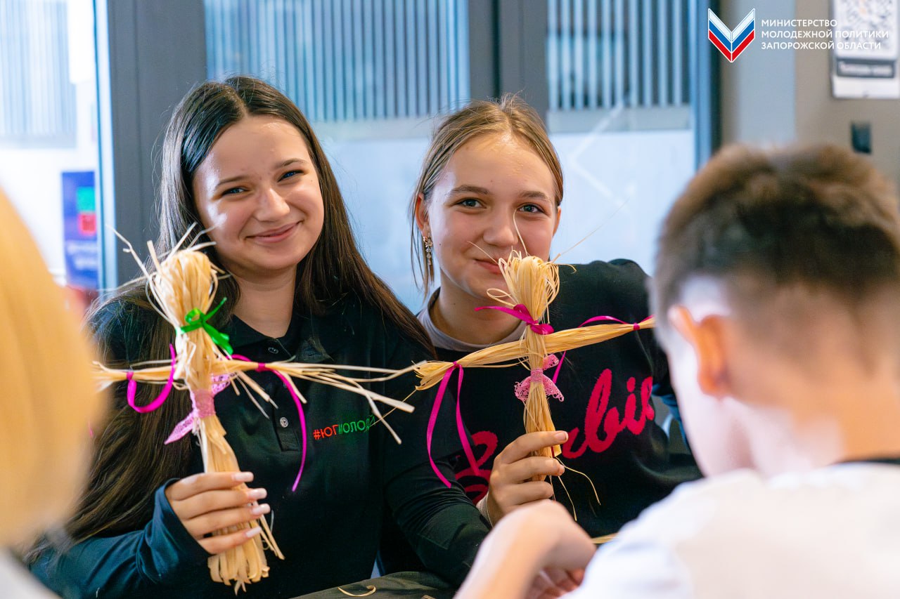 ребята занимались плетением из соломки объемных фигур-кукол, сохранение традиционного элемента русской культуры.