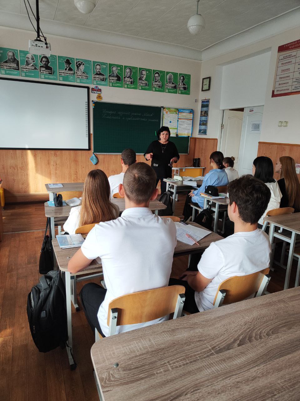 2 октября 2025 года учеников ГБУ ОО ЗО «СОШ №1 «София» г. Днепрорудное посетил Помощник врача по общей гигиене филиала ФБУЗ «Центр гигиены и эпидемиологии ЗО» Елена Кононенко, которая провела профориентрационную беседу с учениками 10-11 классах по выбору профессии врача СЭС.
