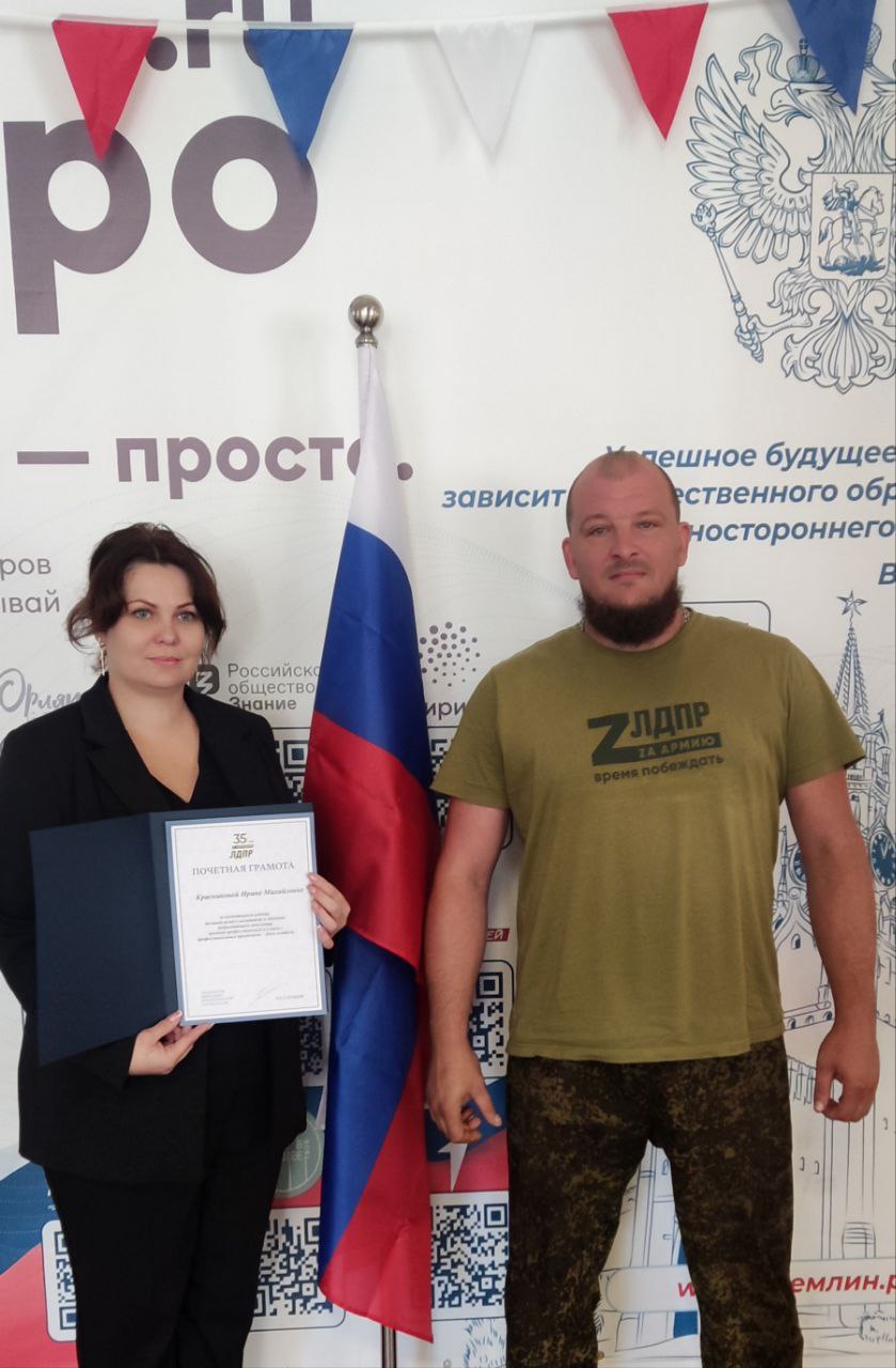 В преддверии профессионального праздника, который объединяет всех, кто посвятил себя благородному делу воспитания и обучения, в Бердянске прозвучали теплые слова поздравлений и благодарности. Депутат ЛДПР Елена Бойнова и координатор Бердянского ГО ЛДПР Сергей Бойнов поздравили учителей с наступающим Днем учителя, вручив почетные грамоты!