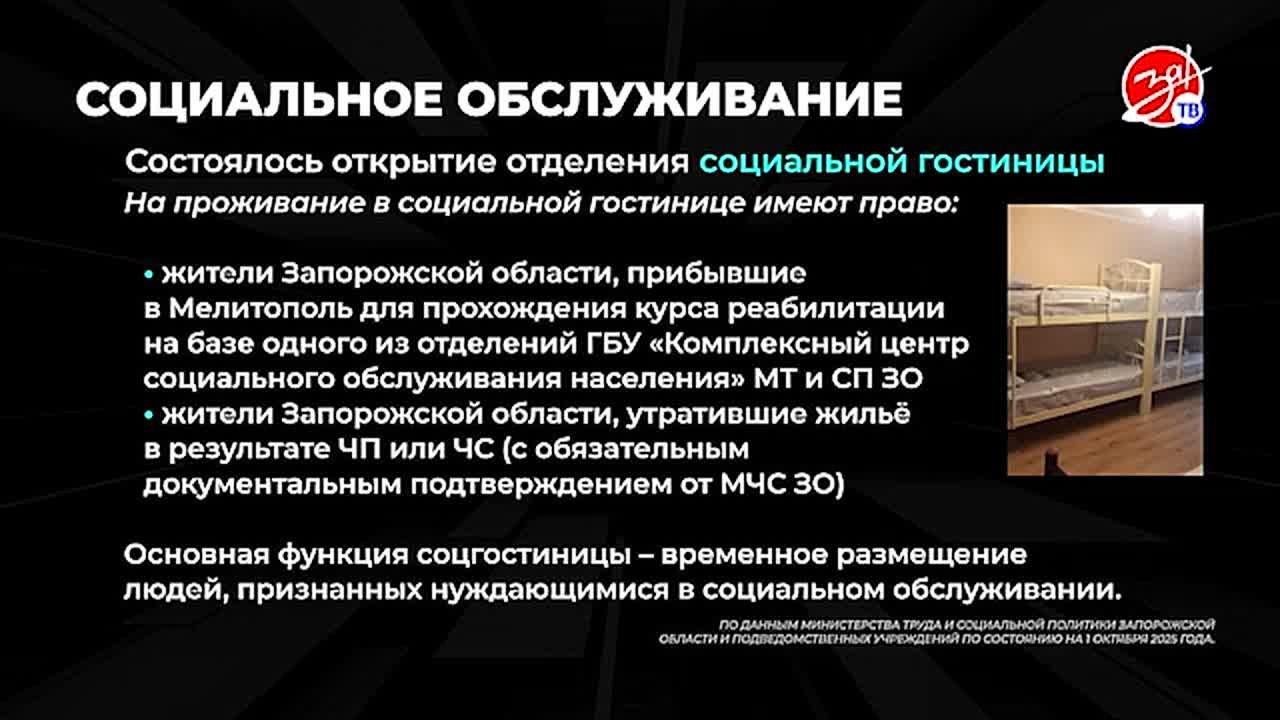 Министерство труда и социальной политики Запорожской области реализует государственную политику в сфере труда и трудовых отношений, социальной поддержки, защиты и обслуживания населения. В сегодняшнем выпуске спецпроекта «Цифры и факты» рассказывается об осуществляемых в регионе социальных проектах и мерах.